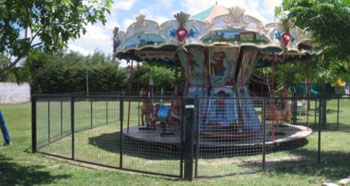 • . Te ofrecemos inflable, pelotero, calesita , tirolesa, canchas de futbol y de voley, estacionamiento privado, salon para grandes , salón separado para chicos, atencion de grandes y chicos, calesita con figuras para 11 nenes, etc., todo en un parque arbolado de 3600mts2.