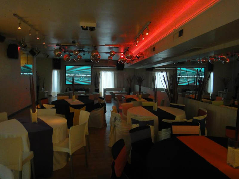 Nuestra pista cuenta con efectos de ultima generación iluminación perimetral con leds, show multicolor con 8 lasers, 11 bolas espejadas, maquina de humo, proyector y pantalla gigante de 100" y un LCD.
