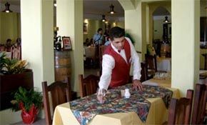 - Van vestidas con mantelería de primera calidad en telas de raso y/o arrazadas, cuyo largo llega hasta cubrir la totalidad de las patas de las mesas.