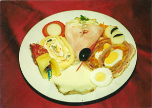 Plato frío (jamón glacé - rusa - matambre de carne - guarnición de verduras)