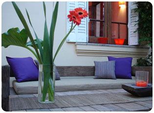 Ambientación del lugar, centros con velas, flores y caminos